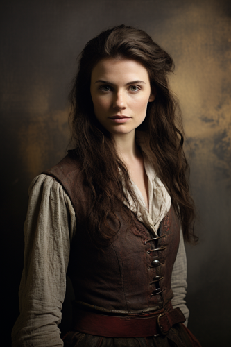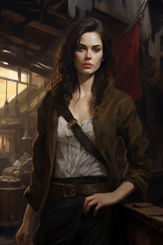 The Actress Aisling Bea as a male travelling trader. A man. Straight hair. Very pale. Menacing and angry. Smug. Dressed in plain clothes. Detailed. Painted. In a fantasy style. --ar 2:3