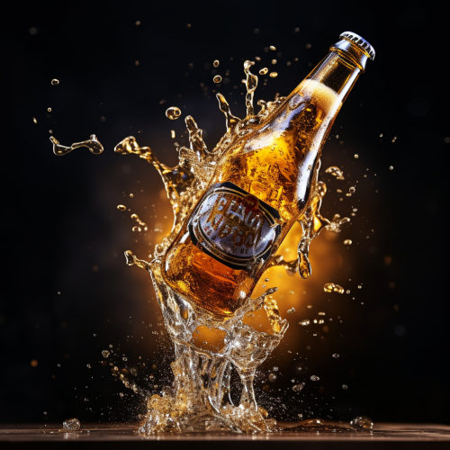 photographic a beautifull splash of a beer from the bottle to a glass