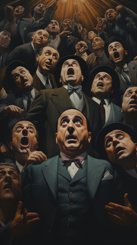 al capone and mafia members looking up shocked and scared color --ar 9:16