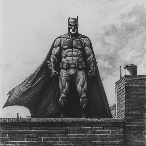 a pencil drawing of Alan ritchson as Batman. He is standing on the rooftops of Gotham. --s 50 --v 6.0