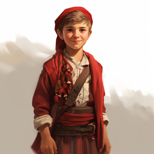 children's illustration of a typical Albanian boy dressed in traditional outfit