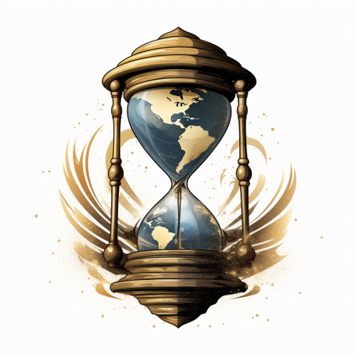 earth, compass, goldent hourglass, logo, white background, dust of the time,