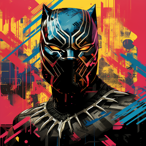 "black panther" minimal form modern lettering typography, cover magazine, multi-layered collages, album, folio and fan formats, colorfull
