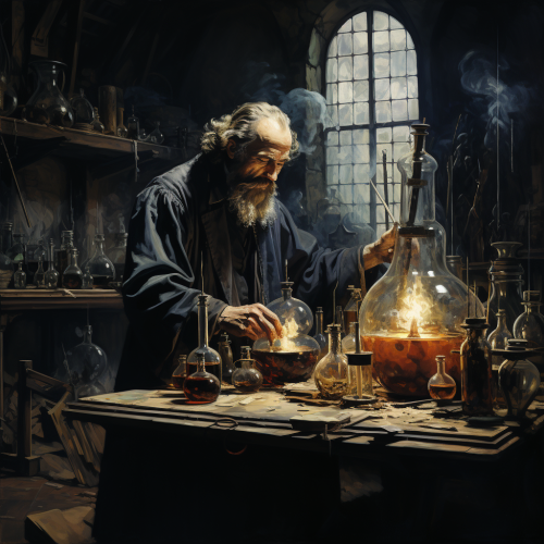 Alchemist's Atelier with Bookshelfs and Laboratory Equipment