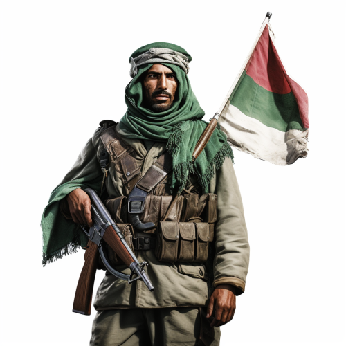 1954 in Algeria , isolated in white background old soldier holding Algerian flag, ultra realistic, canon rs, 50mm
