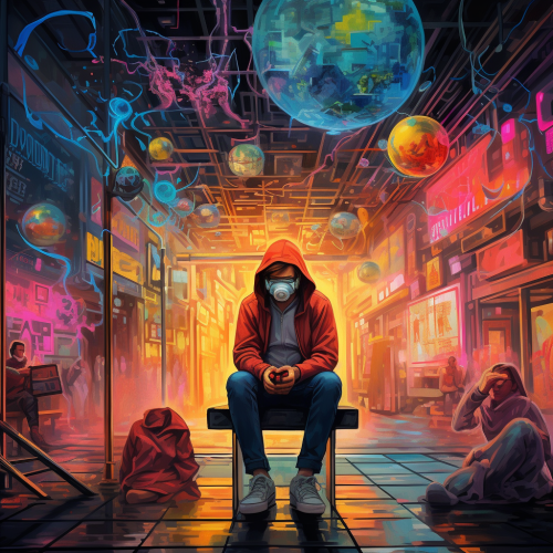 An cyberpunk man, With a translucent mask LED lit, wolf mask, boywithuke, Deadmau5