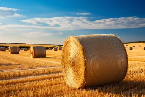 Beautiful English countryside in the summertime, the Norfolk coast, bales of hay beneath the afternoon sun. --seed 1 --ar 3:2