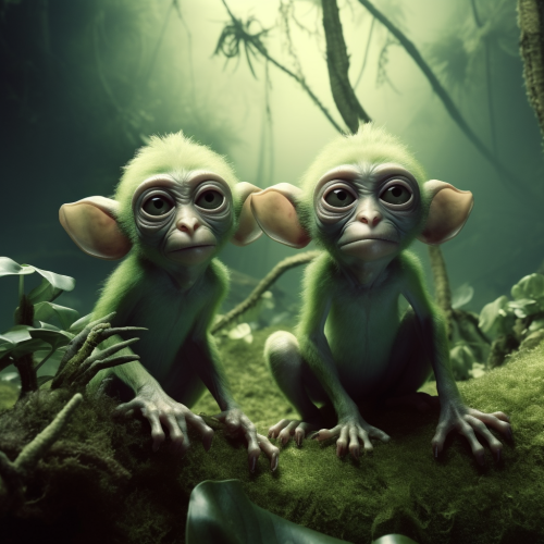 cute alien monkeys in very green forrest imagined by Salvador dali, photorealistic professional photography --v 5.0