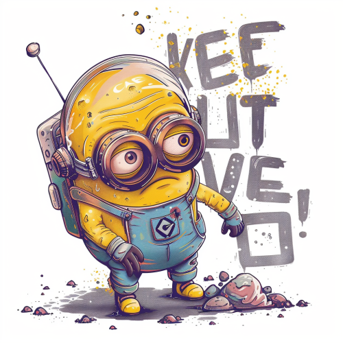 cute confused alien astronaut in Pixar style similar to minions, funny lettering "KEEP --v 6.0