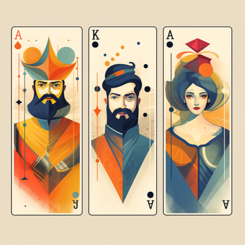twelve simple geometric characters for playing cards: old king & beautiful queen & young jack --v 5.2