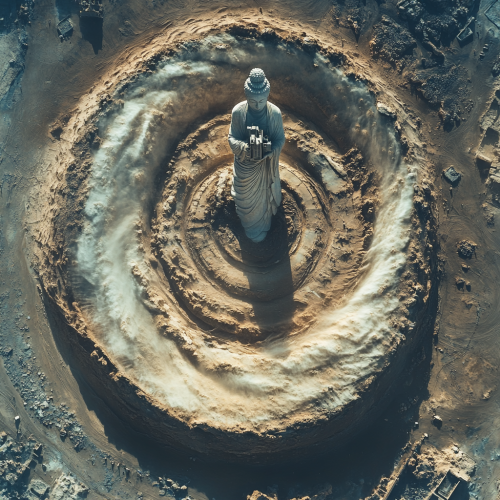 Taken from a high-altitude bird's-eye view, this is a satellite image of a huge spiral cyclone. The cyclone forms the image of a Guanyin in white holding a huge machine gun. The figure of Guanyin clearly appears in the cyclone, and the spiral structure is similar to the outline of a long skirt, which looks elegant and dynamic. --s 750