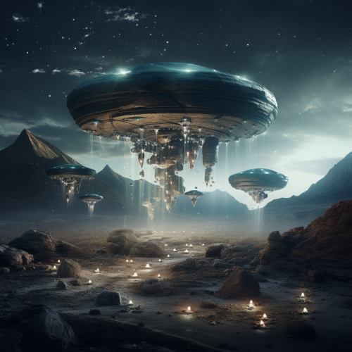 A man getting abducted by aliens in the middle of the forest, close up, dark, UFO, aliens --ar 16:9