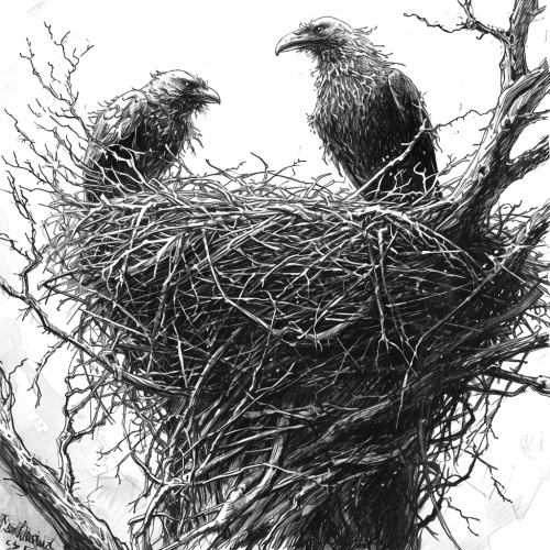 Big Empty Nest Amateur. Bad proportions. sketches. Text notes. pen-and-ink illustrations, scientific and fantasy design. cross-hatching and contouring techniques. Ttrpg fantasy. Poorly executed.--style raw --v 6.0