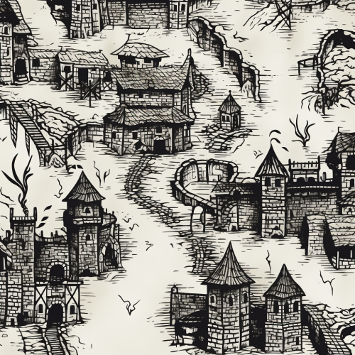 dungeon map, simple lines, black and white, medieval woodcut, ar 16:9 --style raw