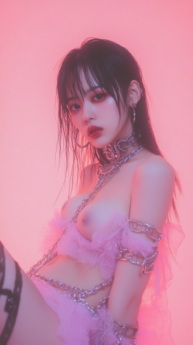 ai uehara an Asian punk girl, full body, with a thin metal chain necklace and silver leg chains, Pregnant purple clothes, --ar 9:16 --personalize hufscvu --stylize 800 --v 6.1