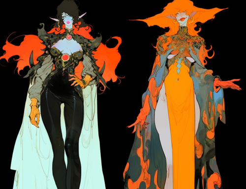 black orange alt fashion halloween theme, Yoshitaka Amano women couple as rainbow neon biopunk theme wires all around, scene from an acid western like El Topo by Alejandro Jodorowsky, y2k style fashion on a balenciaga ad, beksinski style, Tsumori Chisato style fashion, Medieval style clothing --ar 110:85 --niji 5 --style expressive