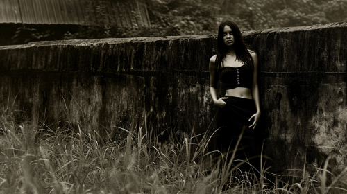 amature 1980s rural council estate photography in style of Kimmo Ojaniemi, ominous and serene evening shot, low wintersun, tall burnt looming postmodern designed reinforced concrete surreal animal and plant statues, drizzle rain, multple creative angles, full portraits of melcholic sisters dancing around simple stone animal heads, they are wearing outfits that is a mix of 70s folk horror and 90s rave attire, realistic skin tone, blushed skin, --no deformed limbs --chaos 20 --style raw --stylize 30 --weird 4 --v 6.1
