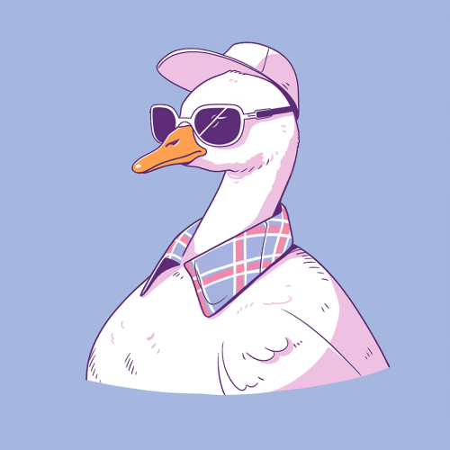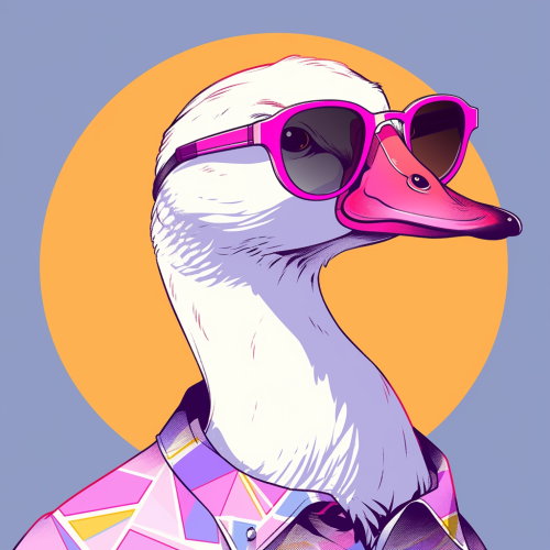 a 2d illustration of a goose wearing glasses, retro, flat, riso print --niji 5