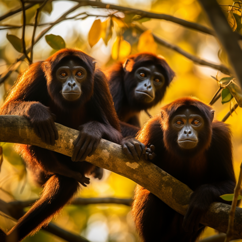 Colorful photo of an Blck-Orange Fire Anaconda in the trees of high wild trees in the amazonas