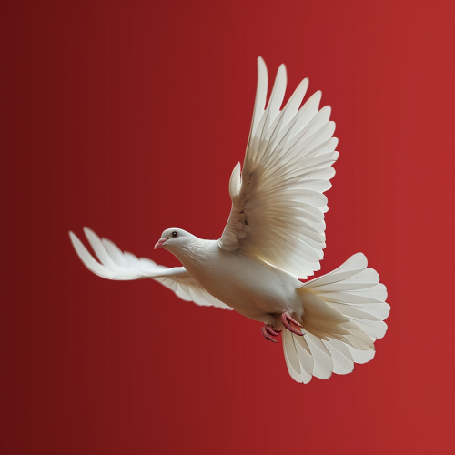 A bronze sculpture of a peregrine falcon in mid-flight, capturing its dynamic pose with detailed feathers and an intense expression, set against a simple white background