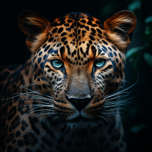 majestic leopard portrait, turning toward the camera, Intricate details. Sharp details. Beautiful. Cinematic lighting. Hyper-maximalist, hyper-detailed. Award-winning animal photography photo realistic 8k --s 250