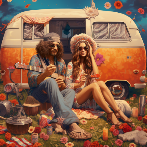 classic americana art re imagined as hippies at festivals