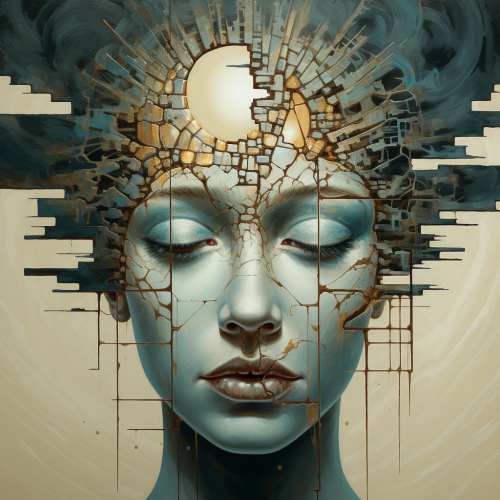 Imagine a close-up image of a middle-aged woman reflecting a mixed expression of contemplation and hope. Her gaze could be slightly upward or towards the horizon, symbolizing the search for solutions and hope for positive change. The lighting is soft and warm, creating a cozy and calming atmosphere. White background Her face must convey a degree of vulnerability, but also strength and resilience. This can be achieved through an expression that combines serenity with a slight smile, suggesting that, despite the challenges (anxiety, depression, stress, etc.), there is a path to well-being. The background can be neutral or with a soft tone so as not to distract from the central figure. --v 5.1