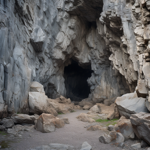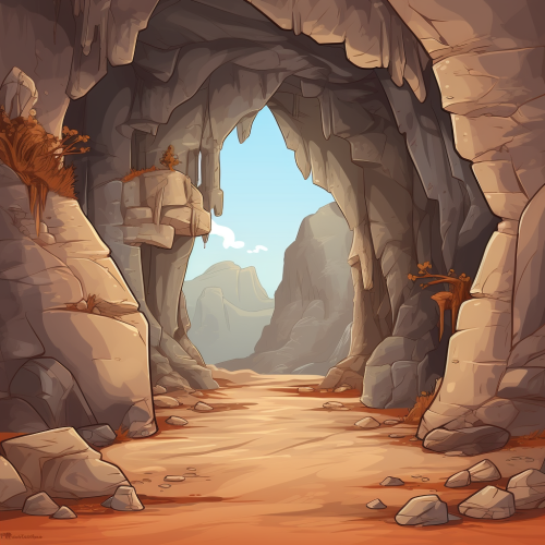 a cave entrace comprised of a stone arch, vector art, minimalist