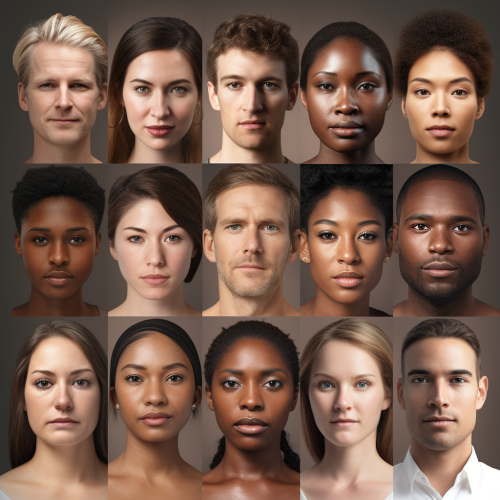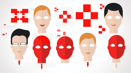 AI Enabled Discrimination on a White Background, a series of icons representing various AI technologies with red cross marks, focus on icons symbolizing facial recognition and hiring algorithms, plain white background for simplicity, atmosphere of direct critique, Illustration, vector art with flat design elements, --ar 16:9 --v 5.0