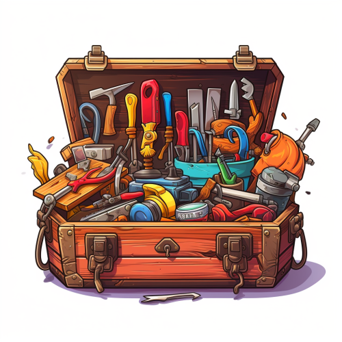 brightly colored cartoon illustration, an open toolbox with tools inside