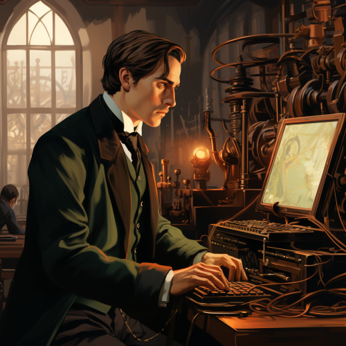 Benedict kumberbatch in victorian england, lots f mechanical computers around. cartoon style simple lines --s 250