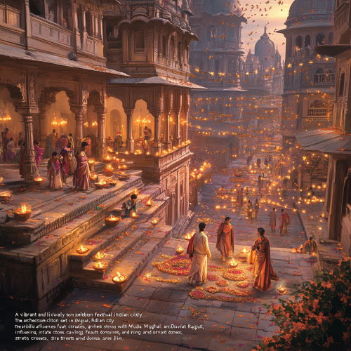 Ancient Ayodhya Celebration with Vibrant Flowers