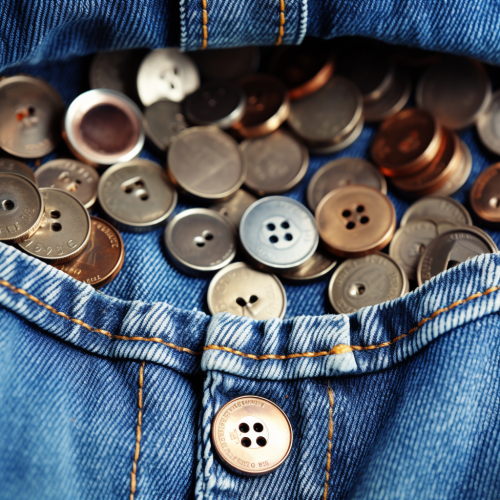 coins falling into front pocket of jeans in the style of 70's denim advertisement --c 25