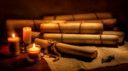 written with pencil on old scorched parchment, old triangle symbol with ancient alphabet spell, forgotten world, very dark, fog, mysterious --v 5.2 --ar 2:3