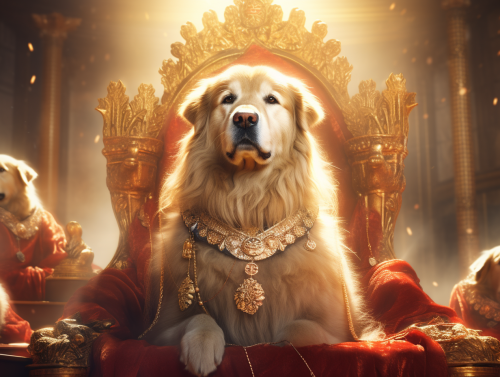 a golden retriever as emperor of ancient China, cinematic lighting, 3d render, --ar 4:3 --s 250