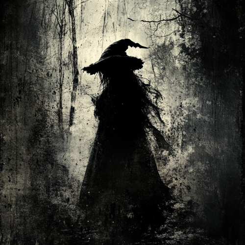 a dark and creepy forest full of mushrooms on the ground, a witches creepy cottage in the far background, full color, colored pencil, --c 50 --ar 17:11