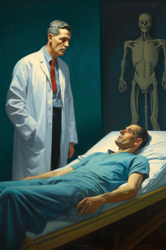 physician arguing with death over the fate of his patient in the style of Edward Hopper --ar 6:9