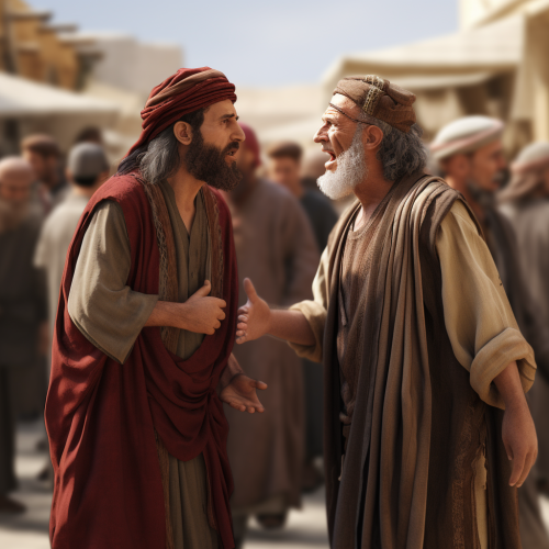 some of mens dressed like ancient hebrew, arguing with each other, hyper realistic, 8K, Canon D5