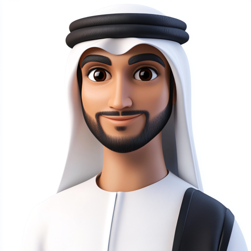 3D headshot of a UAE man wearing a white ghutra and black agal, with tanned skin, expressive brown eyes, slightly arched eyebrows, subtle smile, and calm demeanor. Clean-shaven with medium-length black hair tucked under the ghutra. Vector style with smooth lines, simplified shading, and minimal details. White background