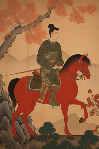a peaceful village during the Goryeo Dynasty, early morning light, in the style of ancient Chinese calligraphy ink, colored and black and white ink, epic, highly detailed, --s 250