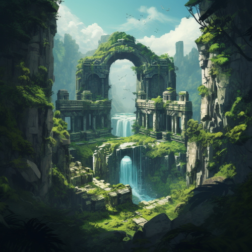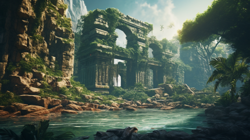 environment of ancient ruins from model 3D models, rendering on unreal engine 5, realism