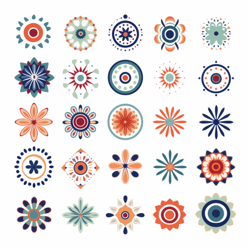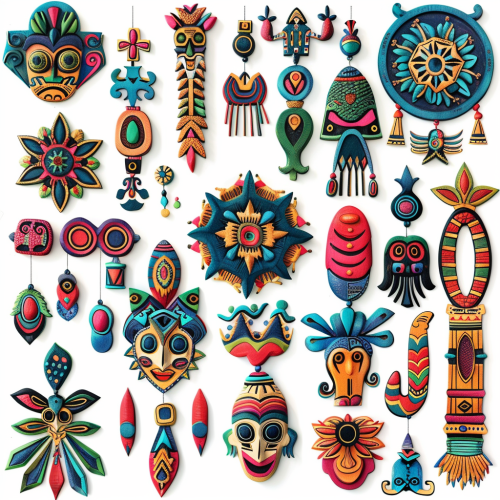 andean crafts symmetrical 2d ornaments, isolated, white background