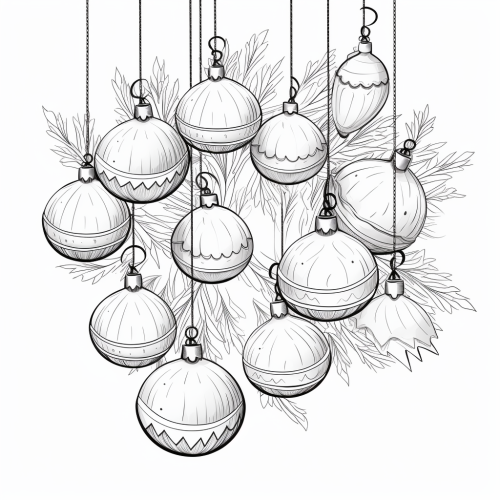 no shading, children coloring page, christmas baubles cartoon black and white line drawing