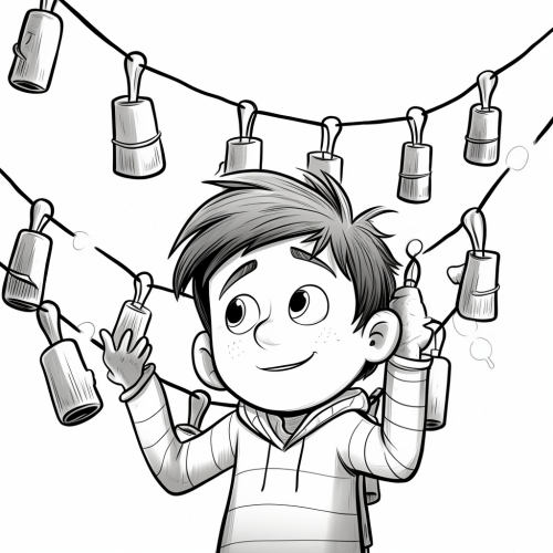 no shading, children coloring page, strings of christmas lights cartoon black and white line drawing