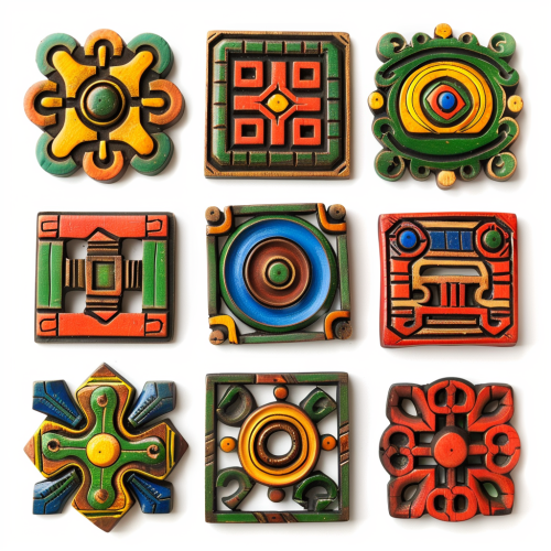 andean crafts symmetrical 2d ornaments, isolated, white background