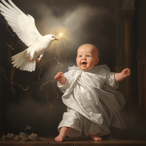 oil painting, Pray with both hands. a cute girl baby angel is smiling in front of angel wings, in the style of 32k uhd, cute and dreamy, 3d --ar 10:15 --v 5.2