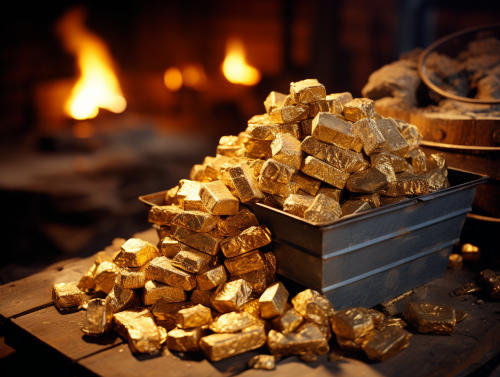 a pile of gold ingots in Fort Knox in a 35mm still frame from 1980s National Geographic magazine --ar 4:3 --s 750 --style raw