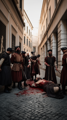 Cain murdering Abel in animated mosaic style