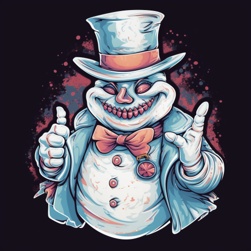 sharp features Frosty The Snowman, vector, t-shirt design, kawaii, vivid colors, holographic, extremely detailed, contour, white background --v 5.0