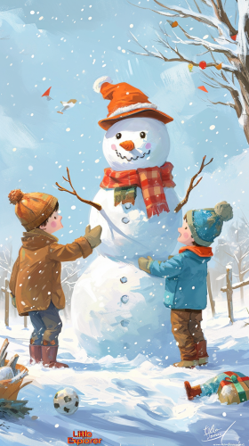 christmas coloring book with colours, snowman, children playing, cartoon, ar-- 2:1